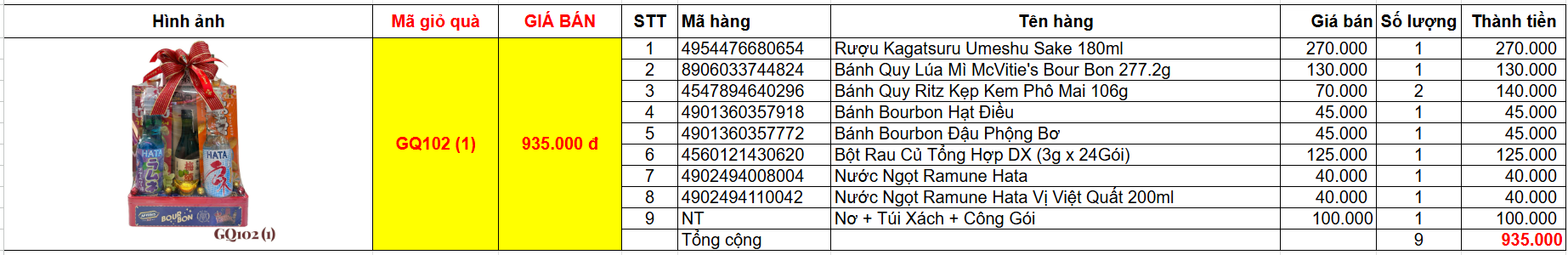 Bảng giá chi tiết giỏ quà tết GQ102(1)