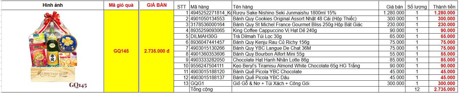 Bảng giá chi tiết giỏ quà tết GQ145
